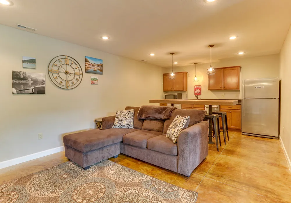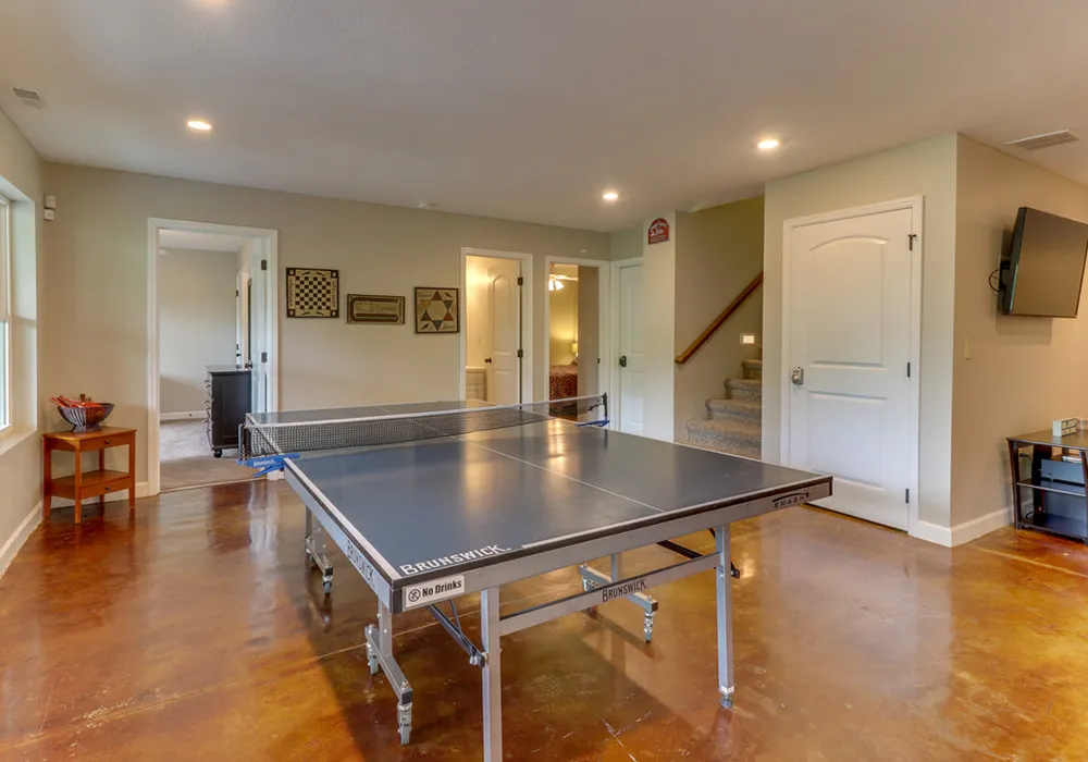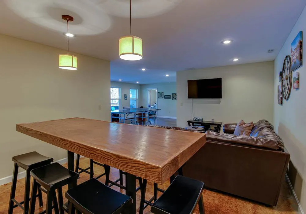 Large Rec Room With Ping Pong Table As Well As a Tv Viewing/gaming/sitting Area Next to the Bar, Kitchenette With Refrigerator, Sink, Ice Machine and a Large 7’ Bar With Seating for 7. There Are 3 Bedrooms On This Level, 1 Being a Bunk Room (bed Plus a Set of Bunk Beds), 1 with a King and 1 with 2 twins. This Floor Also Has a Second Washer and Dryer Set. The Covered Deck On This Level Features a Lighted Hot Tub, and Additional Seating.