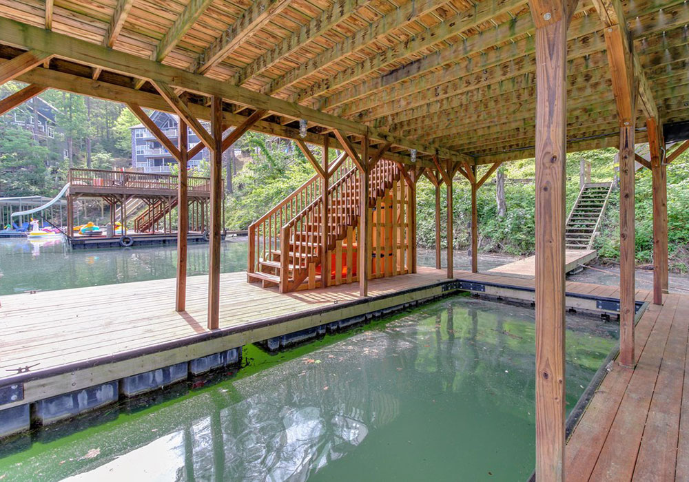 The two story dock with water slide is one of the most exciting attractions during your stay. The top story is perfect for sunbathing and family gatherings while the first story provides enough room for several boats and jet skis.
