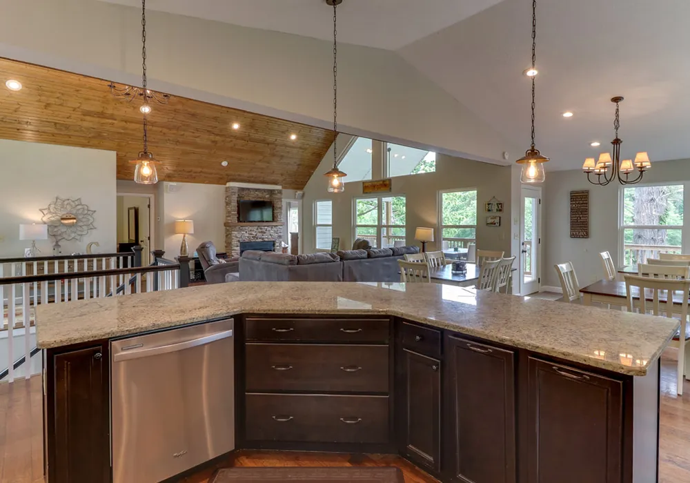 This Norris Lake Vacation Rental offers the best of accomodations. This kitchen provides plenty of space and with all the amenities one would expect in a luxury house rental on Norris Lake.